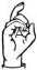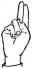 На ћирилици написано БЛАЖА ДУМАНОВИЋ састоји се из 14 слова [?]. Исписано ћириличном једноручном азбуком за глувонеме: